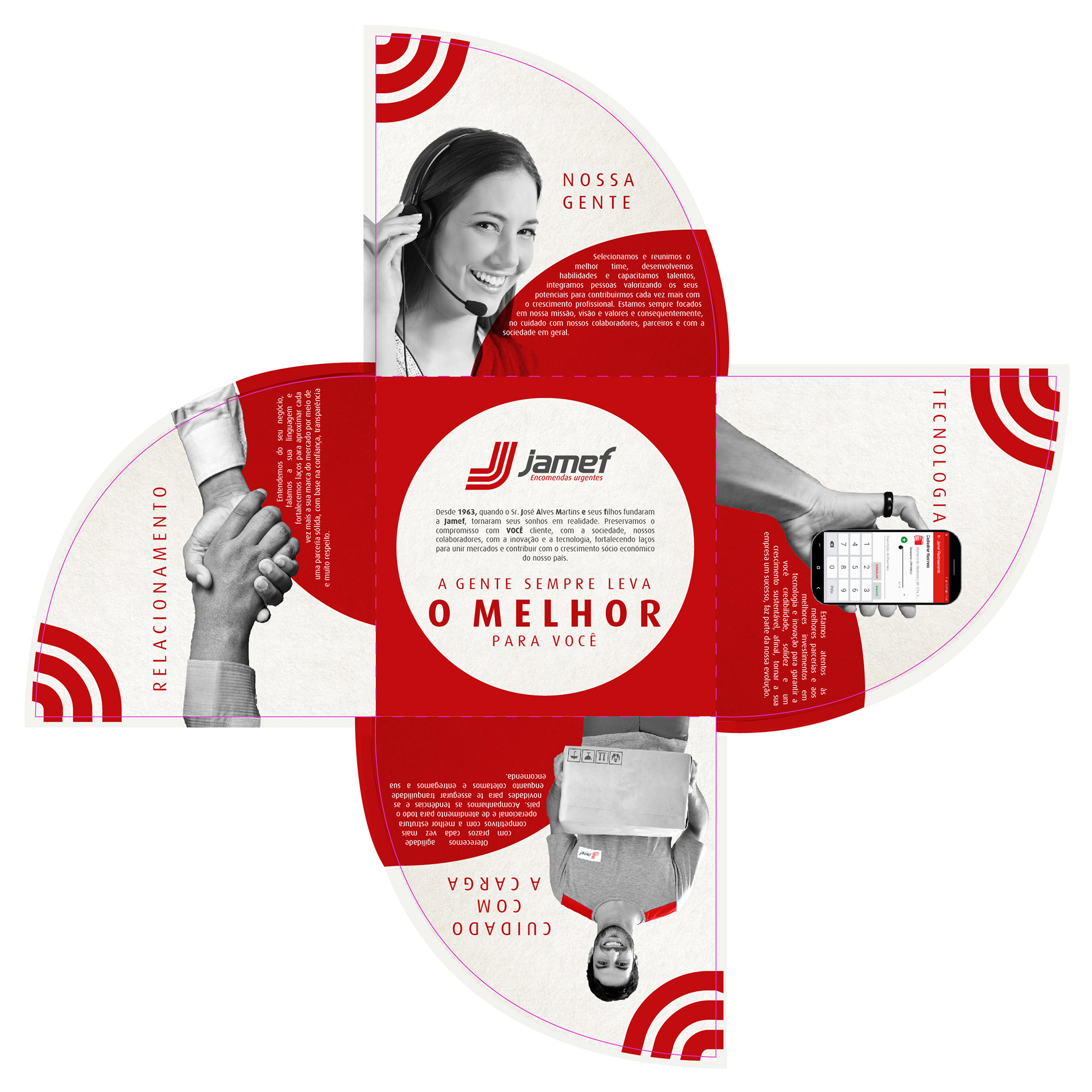 Folder e logotipo comemorativo feitos para Jamef Encomendas Urgentes no aniversário de 56 anos da empresa.